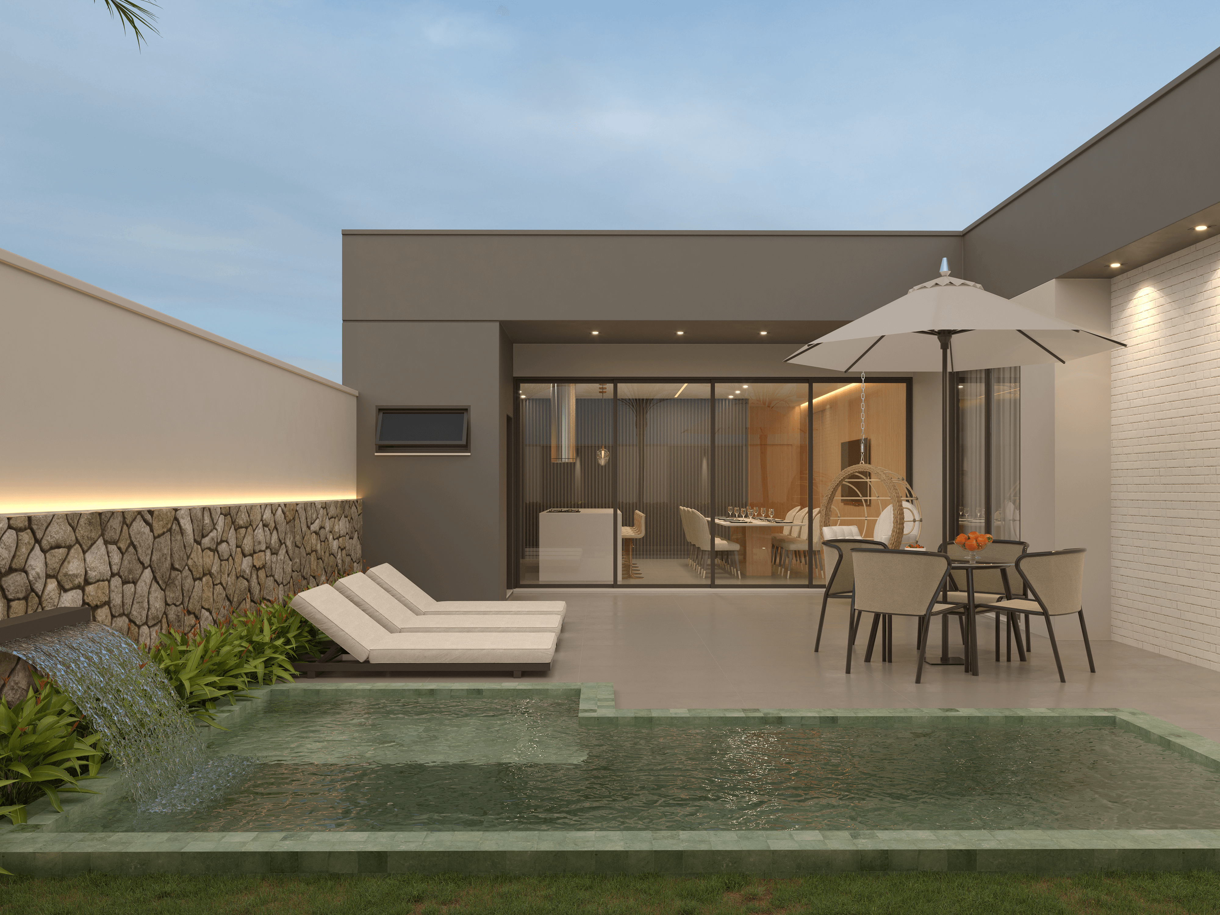 - Piscina com espaço de deck para cadeiras;