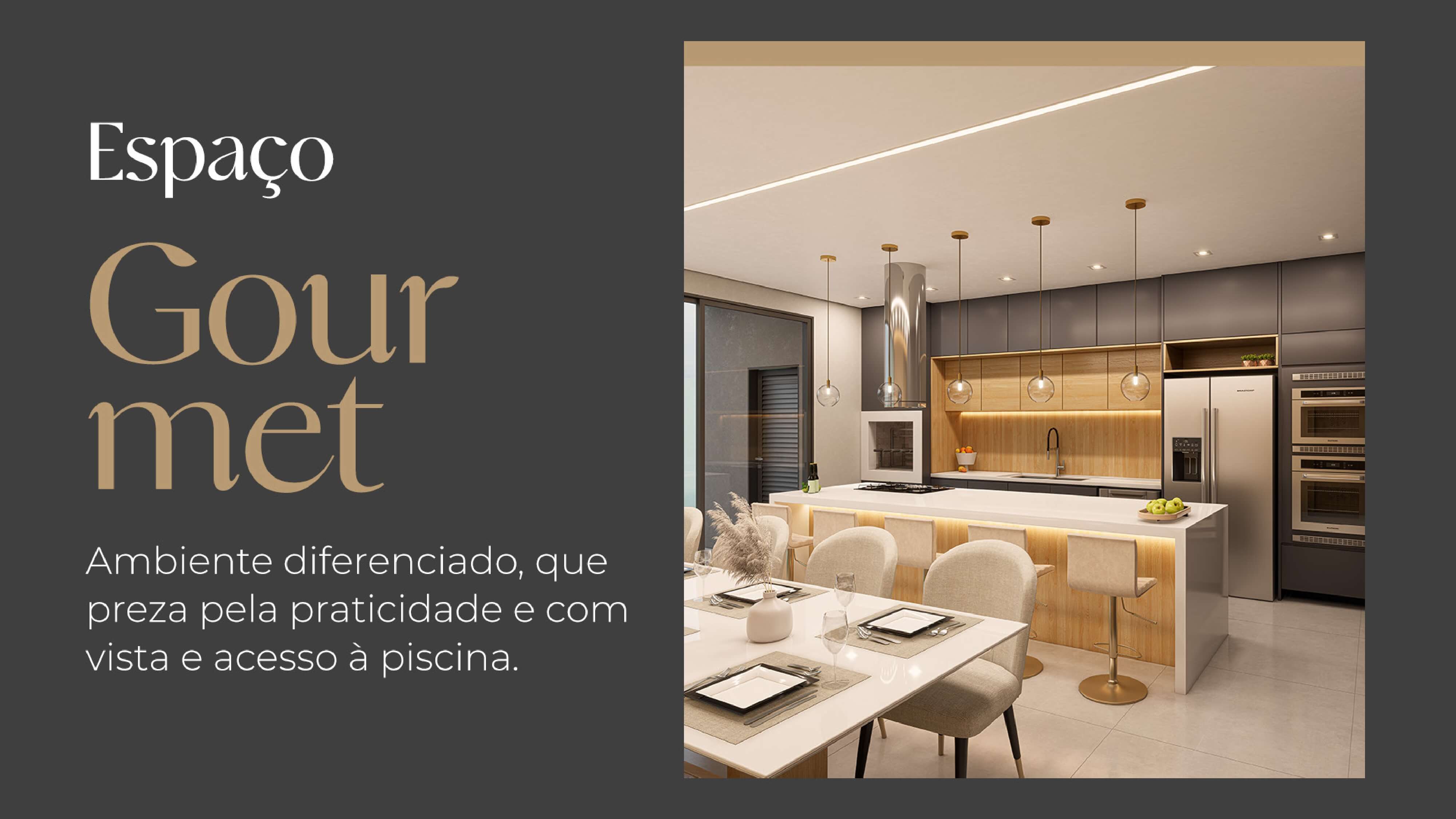 Casa de alto padrão. Estilo moderno, em conceito aberto e integrado de sala, cozinha e área gourmet. Piscina completa, água quente com aquecimento solar.